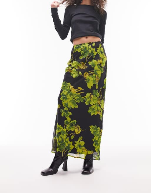 Topshop floral chiffon maxi skirt in black and yellow ASOS Very well made.