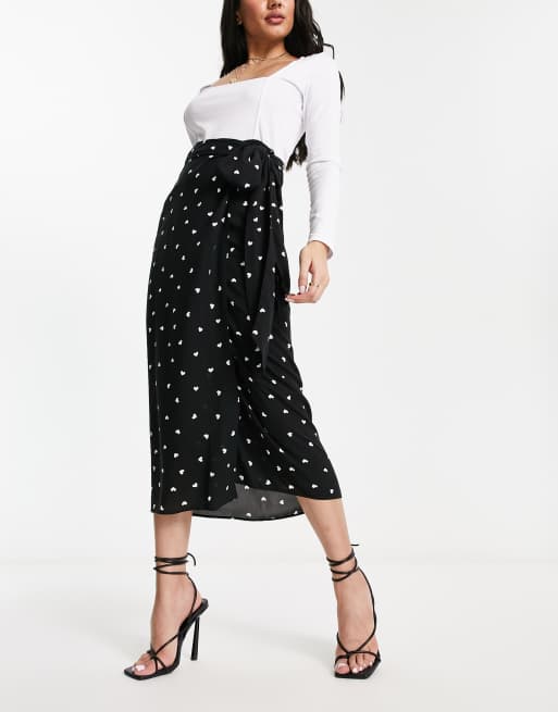 Style Cheat midi wrap skirt in black ditsy heart part of a set Very well made.