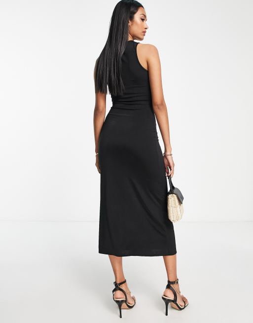 ASOS DESIGN slinky midi dress with keyhole cut out detail in black Very well made.