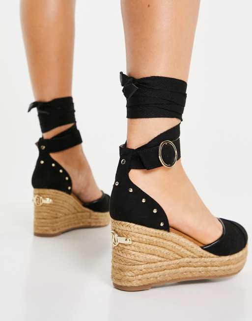 River Island studded heeled espadrille wedge sandal in black ASOS Very well made.
