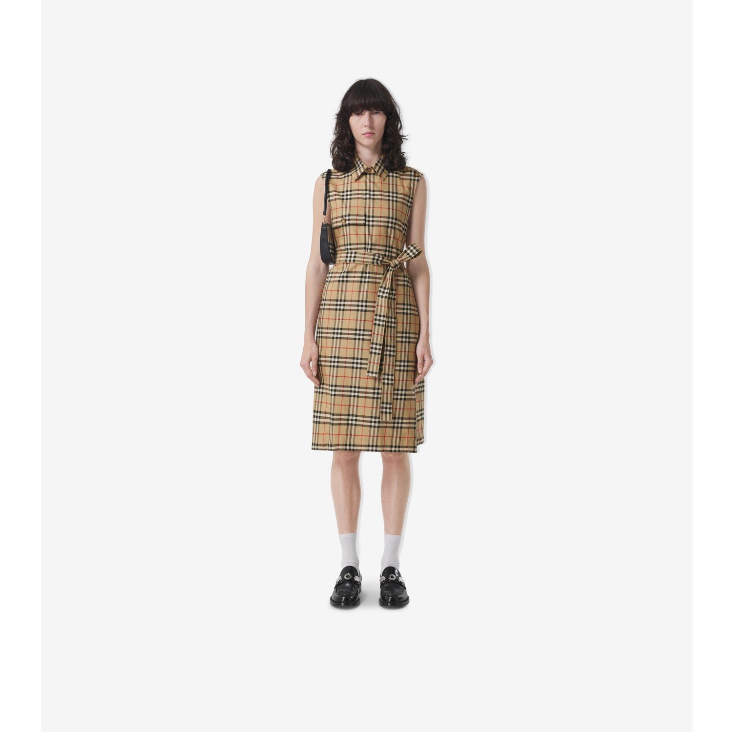 Sleeveless Vintage Check Cotton Shirt Dress in Archive Beige Very well made.