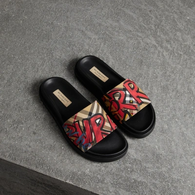 BURBERRY slide graffiti sandals Loop Generation Very well made.
