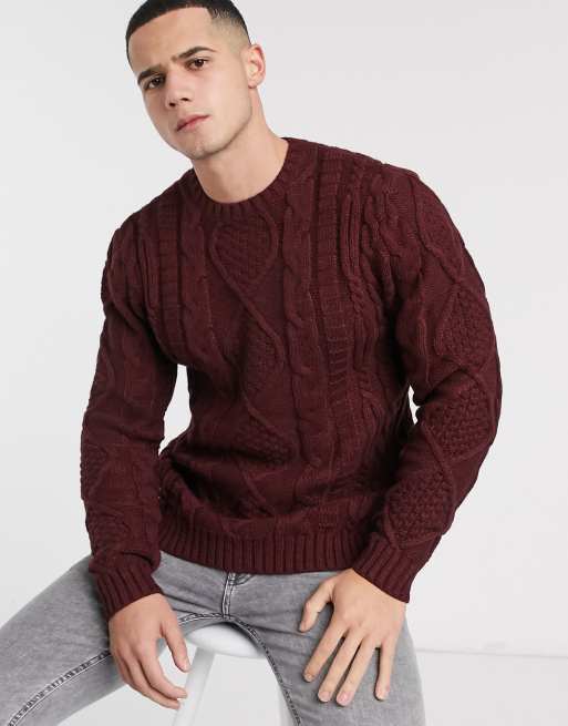 ASOS DESIGN heavyweight cable knit jumper in burgundy ASOS Very well made.