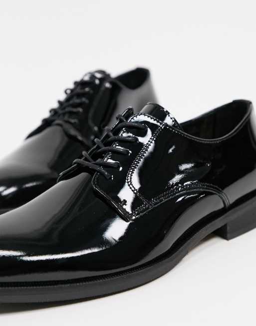 Derbies homme en cuir noir brillant bout carr Very well made.