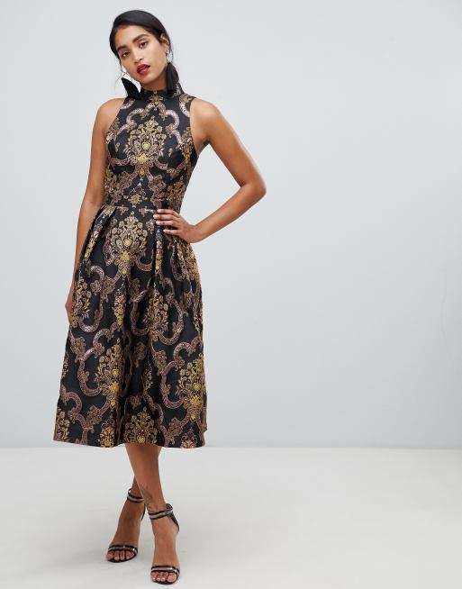 Chi Chi London premium jacquard midi skater dress with open back in multi Very well made.