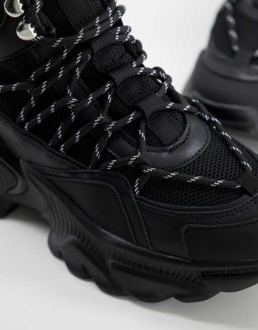ASOS DESIGN District chunky hiker trainers in black drench Very well made.