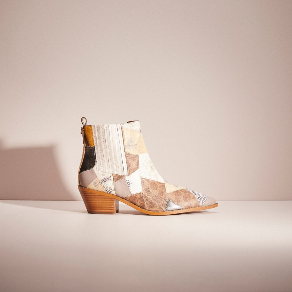 Coach Cream Leather Pointed Toe Western Style Block Heel Very well made.