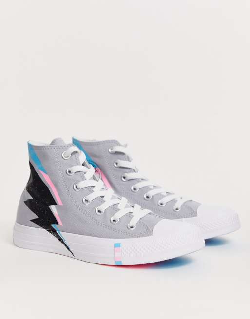 Zapatillas de deporte grises azules y rosas hi top con detalle de rayo Pride Chuck Taylor All Star de Converse Very well made.