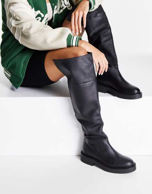 Bottes Cuissardes Plates en Cuir Daim Noir Mod le d Hiver Bruna Very well made.