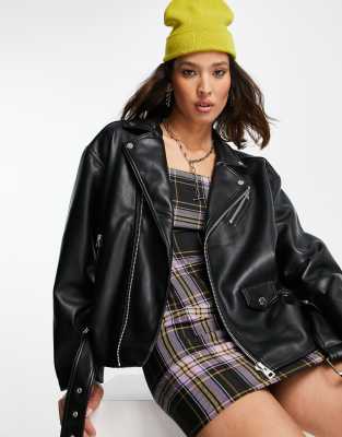 Topshop faux leather oversized biker jacket in black ASOS Very well made.
