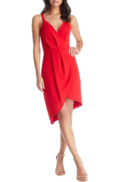 Dress The Population Owen Plunge Neck Faux Wrap Dress In Rouge Very well made.