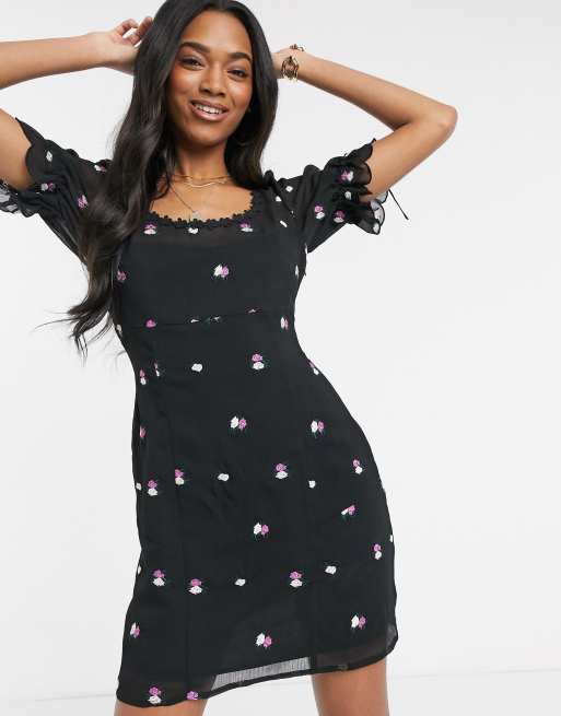 Fashion Union mesh mini dress with floral embroidery Very well made.