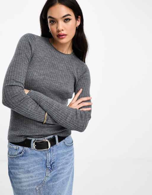 Other Stories merino rib knit fitted jumper in grey Very well made.