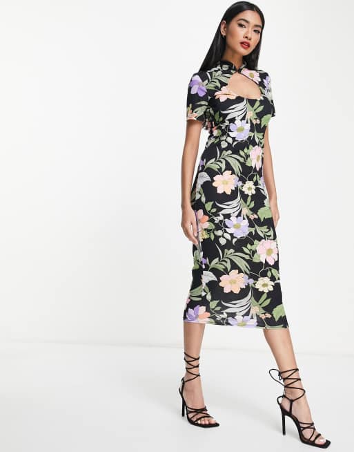 ASOS DESIGN keyhole midi dress in sketchy floral print Very well made.
