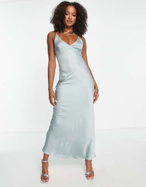 ASOS DESIGN Tall high apex satin maxi slip dress in dusky blue Very well made.