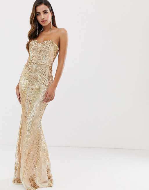 Goddiva bandeau sequin embellished maxi dress in gold Very well made.