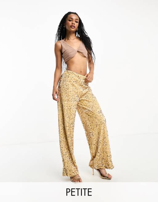 Extro Vert Petite wide leg slouchy velvet pants in gold Very well made.