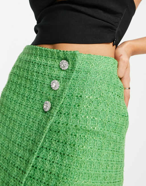 ASOS DESIGN boucle mini skirt with diamante buttons in green Very well made.