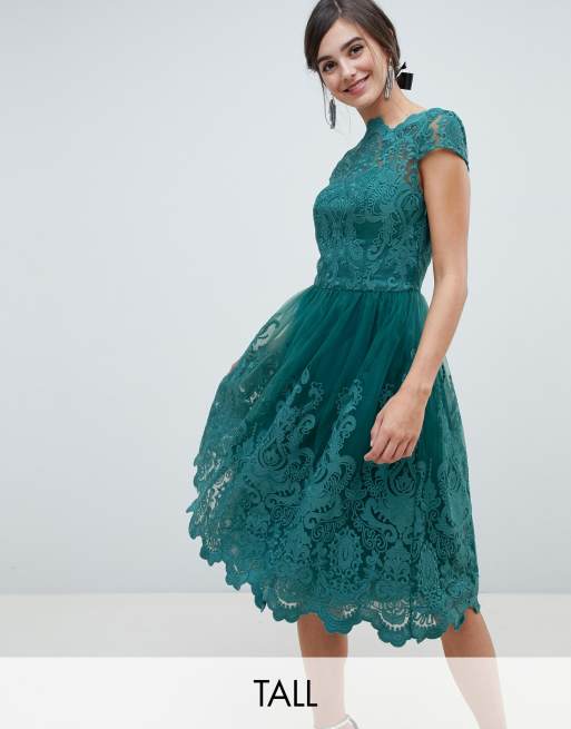 High Neck lace long Sleeve Midi Dress in Green Chi Chi London Very well made.