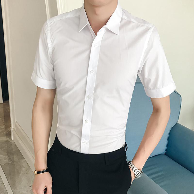 Shenrun Men White Short Sleeve Shirts Male High Quality Formal Shirt Wing Collar Wedding Groom Business Party Prom Size 38 46 Very well made.