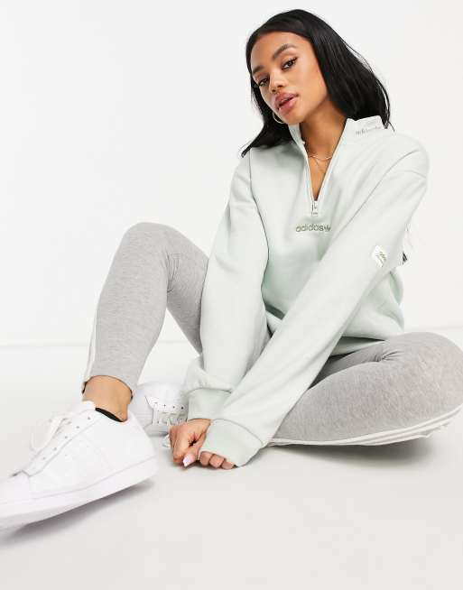 adidas Originals Trefoil Linear 1 4 zip sweatshirt in pale mint green Very well made.