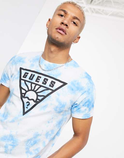 Guess T shirt in blue tie dye with chest sunrise print logo ASOS Very well made.