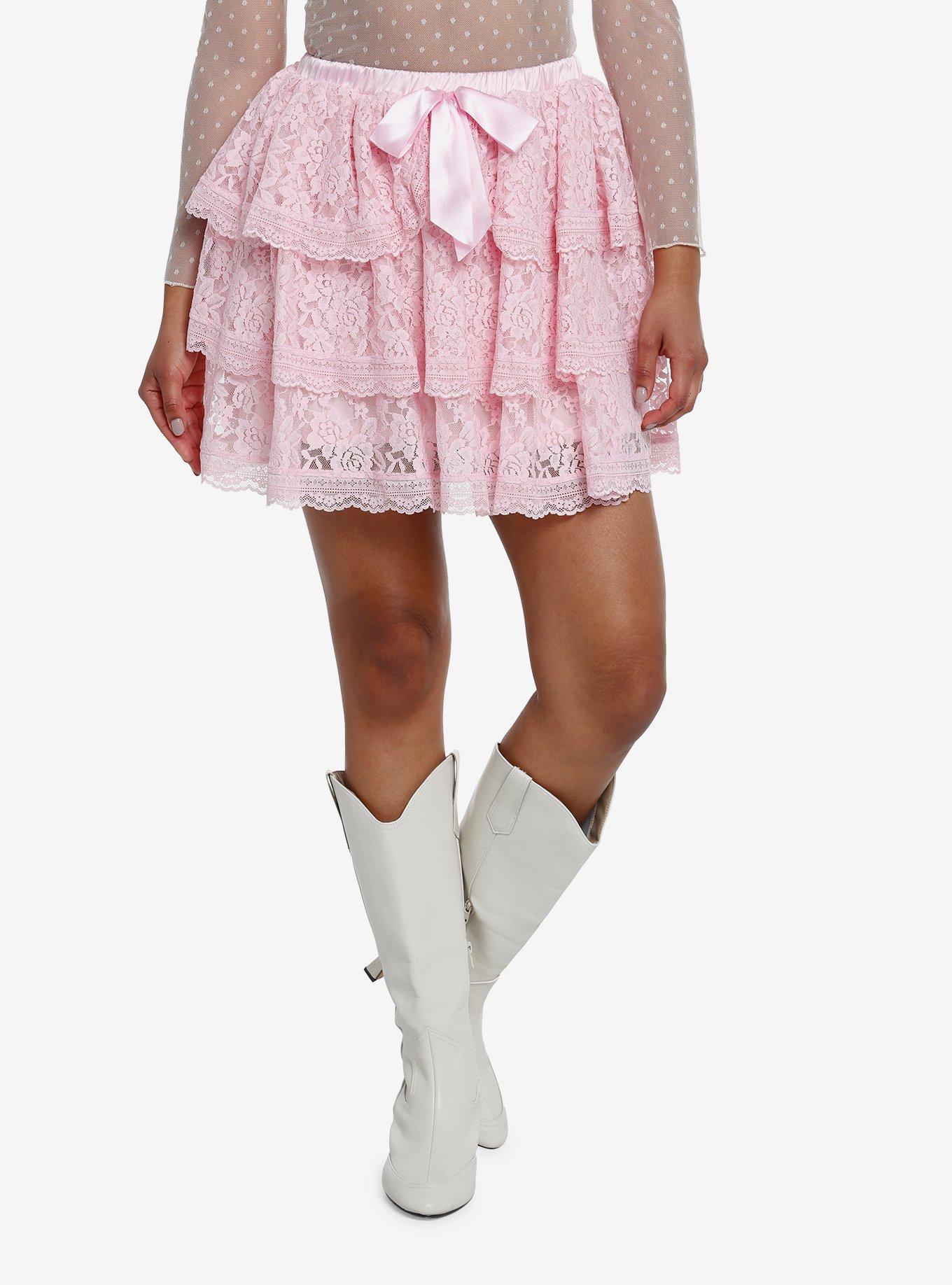 Sweet Society Pink Lace Bow Tiered Skirt Very well made.