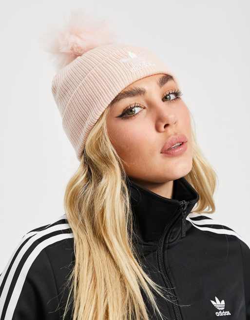 adidas Originals Berretto con logo e pompon in pelliccia sintetica rosa Very well made.