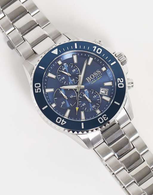 Boss mens blue dial bracelet watch in silver 1513907 Very well made.