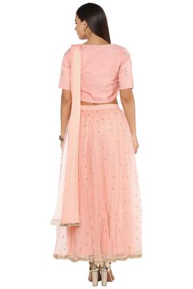 IMARA Peach Coloured Golden Printed Ready to Wear Lehenga Choli with Dupatta Very well made.