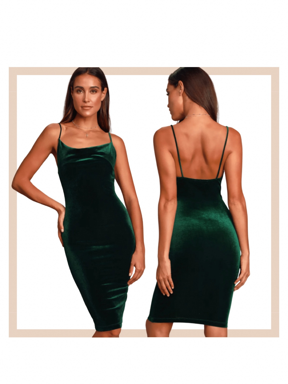 LULUS Dress Jazzy Belle Dark Green Velvet Cowl Neck Stretch US Very well made.