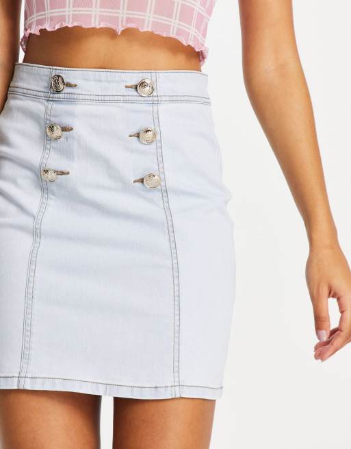 Morgan denim mini skirt with gold button detail in light blue Very well made.