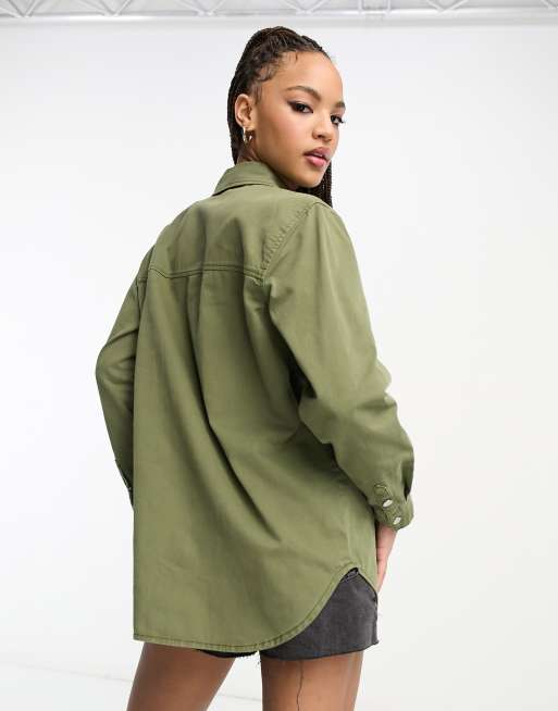 ONLY Khaki Women s Denim Shirt YOOX Very well made.