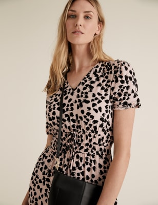 Black Leopard Print V Neck Short Ruffle Sleeve 2 In 1 Midi Dress Very well made.