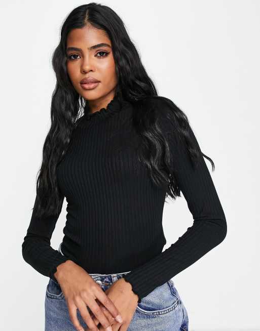 Buy Black Ribbed Slim Fit Lettuce Hem Top 24 Workwear Tu Very well made.
