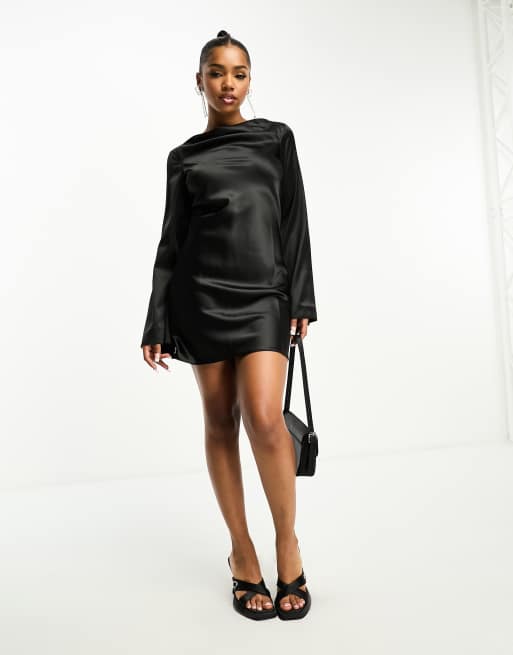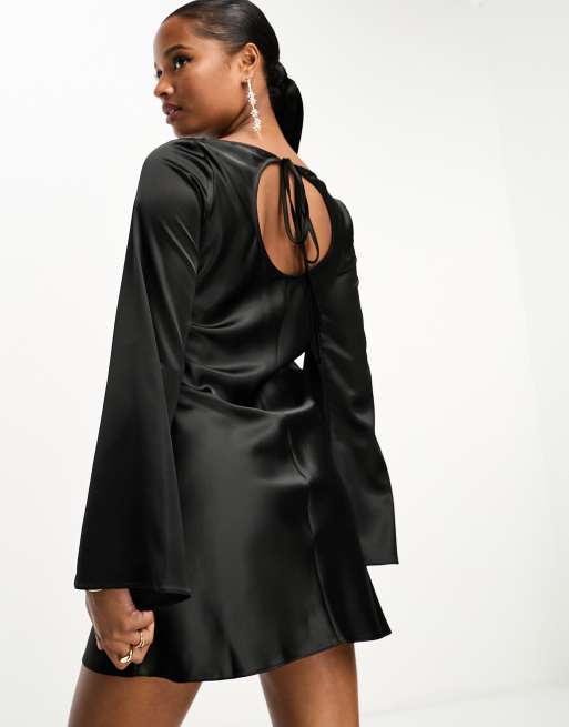 Miss Selfridge satin a line flared sleeve mini dress in black Very well made.