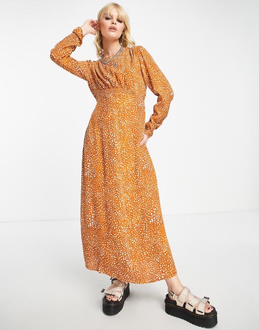 Mango Robe manches longues paules bouffantes et imprim Orange Very well made.