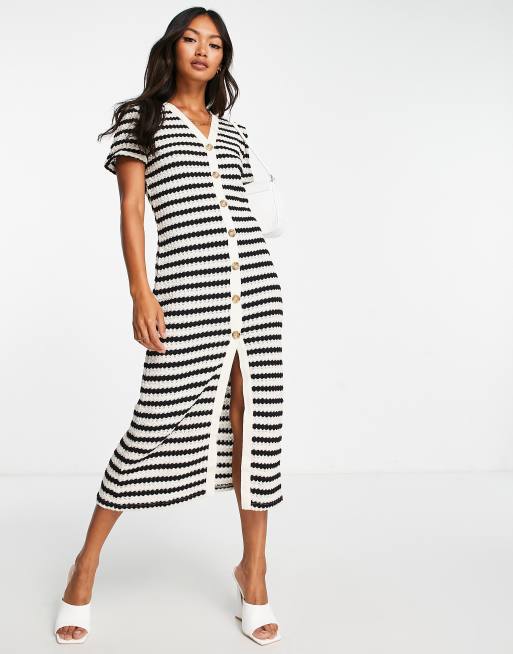 Mango Robe mi longue boutonn e au crochet Rayures noires Very well made.