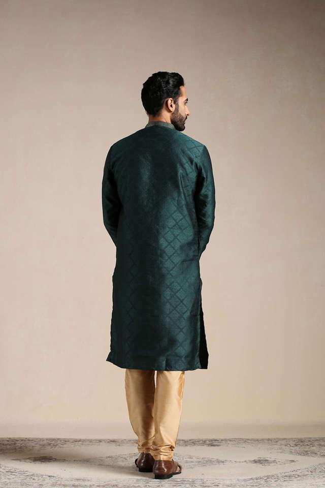 Buy MANYAVAR Green Jacquard Art Silk Regular Fit Men s Kurta Very well made.