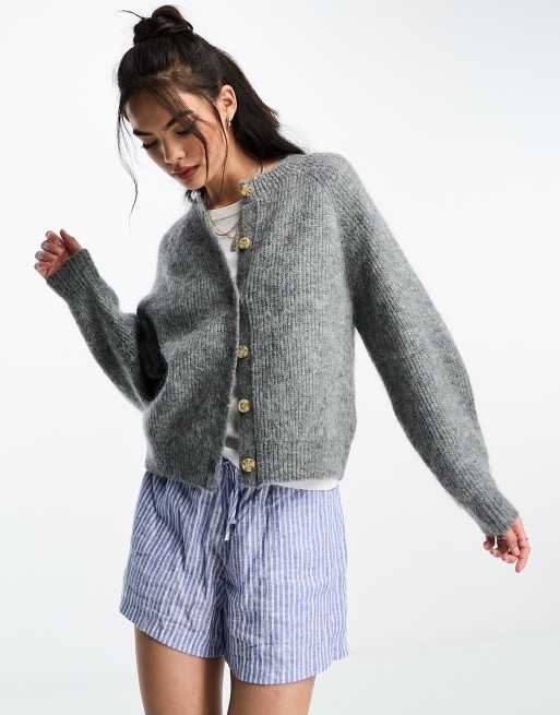 Other Stories fluffy yarn wool blend cardigan in grey ASOS Very well made.