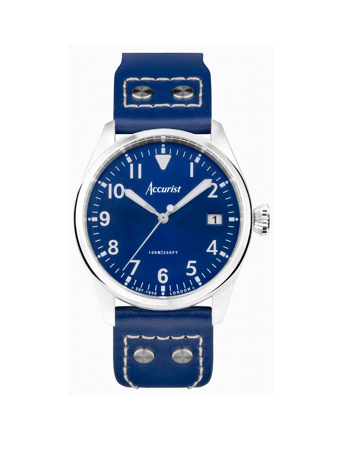 Aviation Mens Blue Leather Strap Analogue Watch Very well made.
