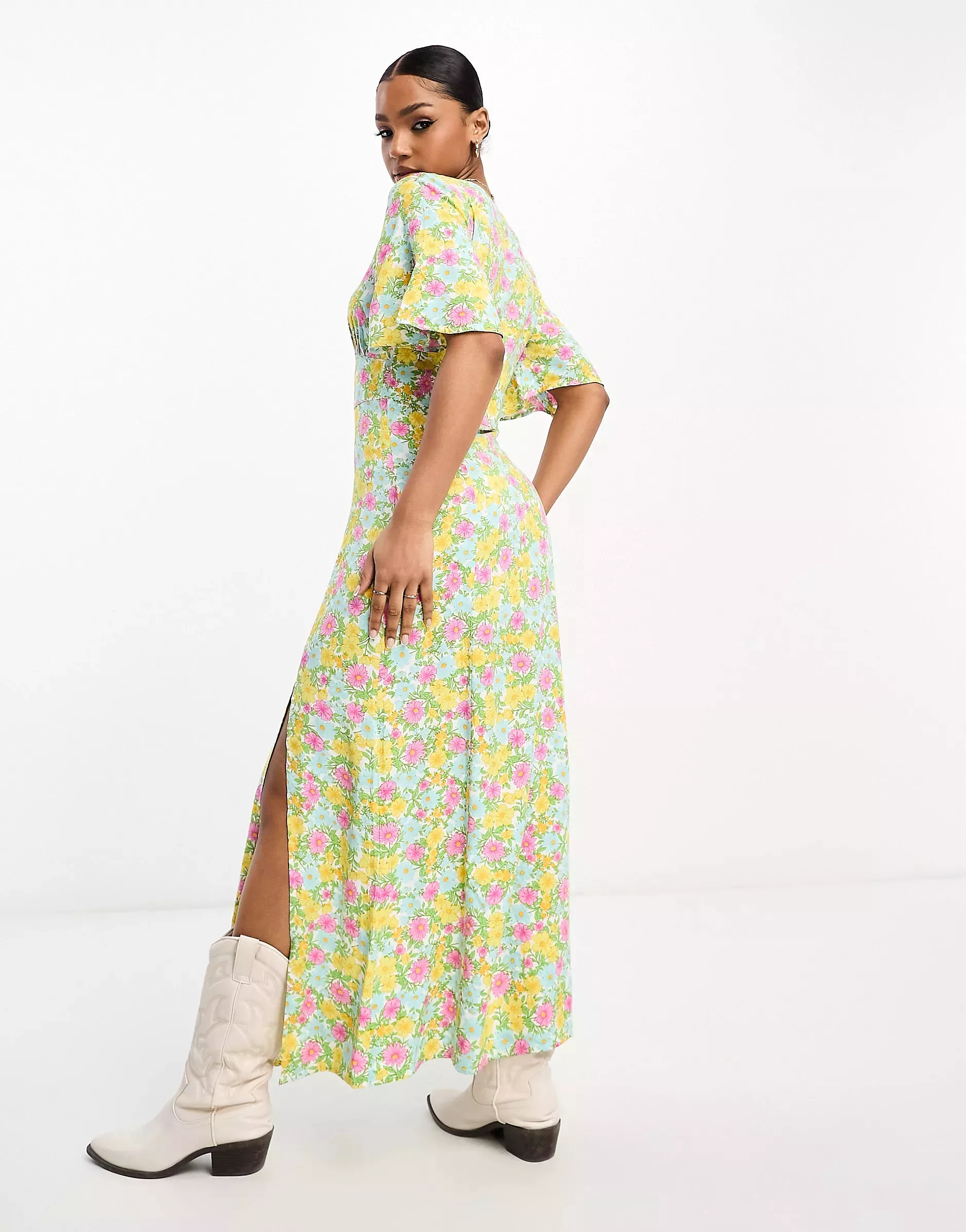 Miss Selfridge long sleeve button through maxi dress in spot print Very well made.