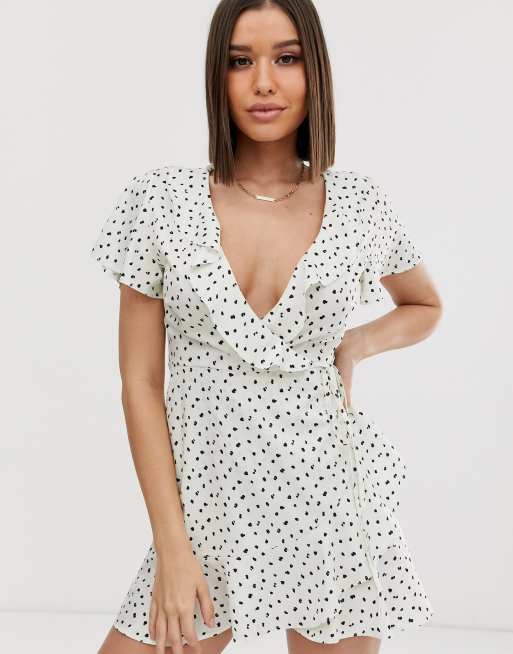 Missguided wrap tea dress with frill in polka dot Very well made.
