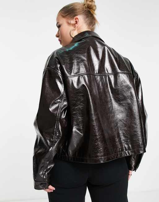 ASOS DESIGN Curve cracked faux leather chuck on jacket in brown ASOS Very well made.