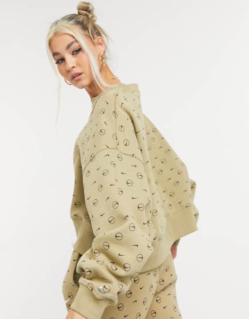 Nike all over logo print cropped sweatshirt in camel Very well made.