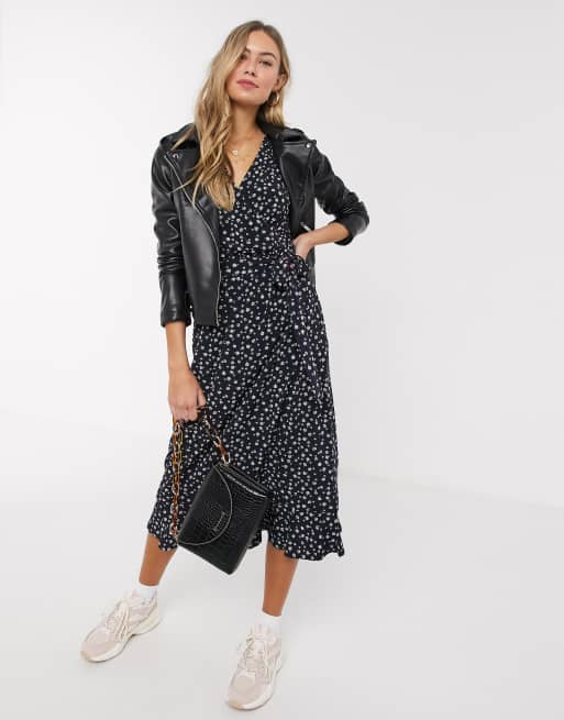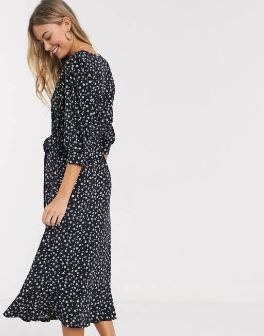 Oasis polka dot wrap tiered midi dress in navy ASOS Very well made.