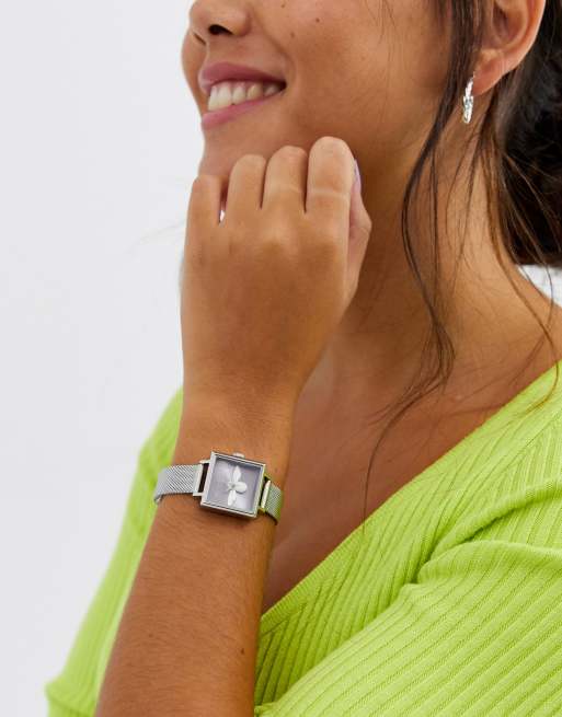 3D Bee Watercolor Florals Dial Silver Mesh Watch Seven Season Very well made.