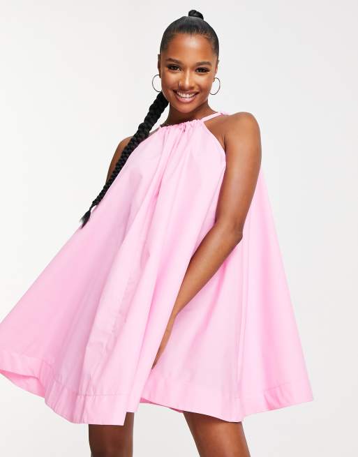 ASOS DESIGN Petite volume cotton mini swing sundress in light pink Very well made.