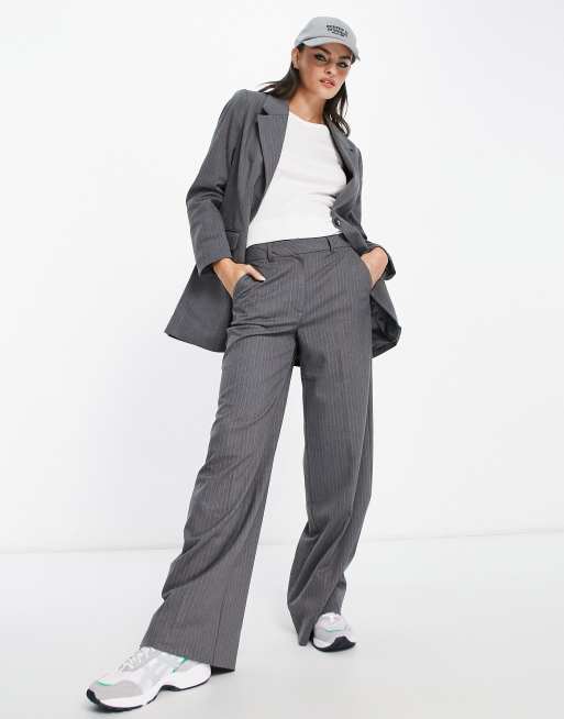Selected Femme Pantalon ajust d ensemble fines rayures coupe ample Gris Very well made.