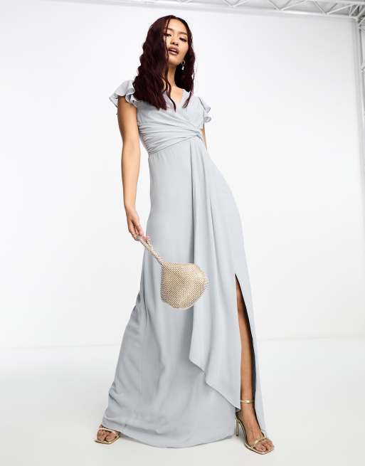 TFNC Petite Bridesmaid flutter sleeve maxi dress in gray Very well made.